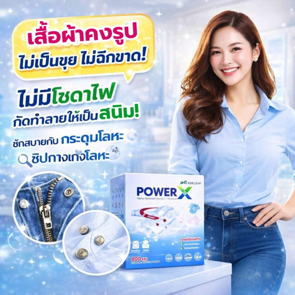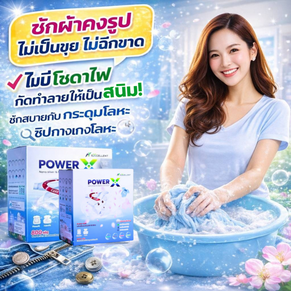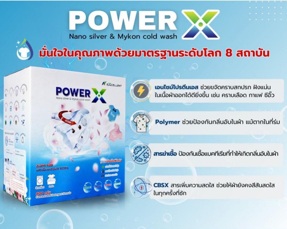 ผงซักฟอก Power X สูตรเข้มข้นพิเศษ Nano Silver & Mykon Cold Wash