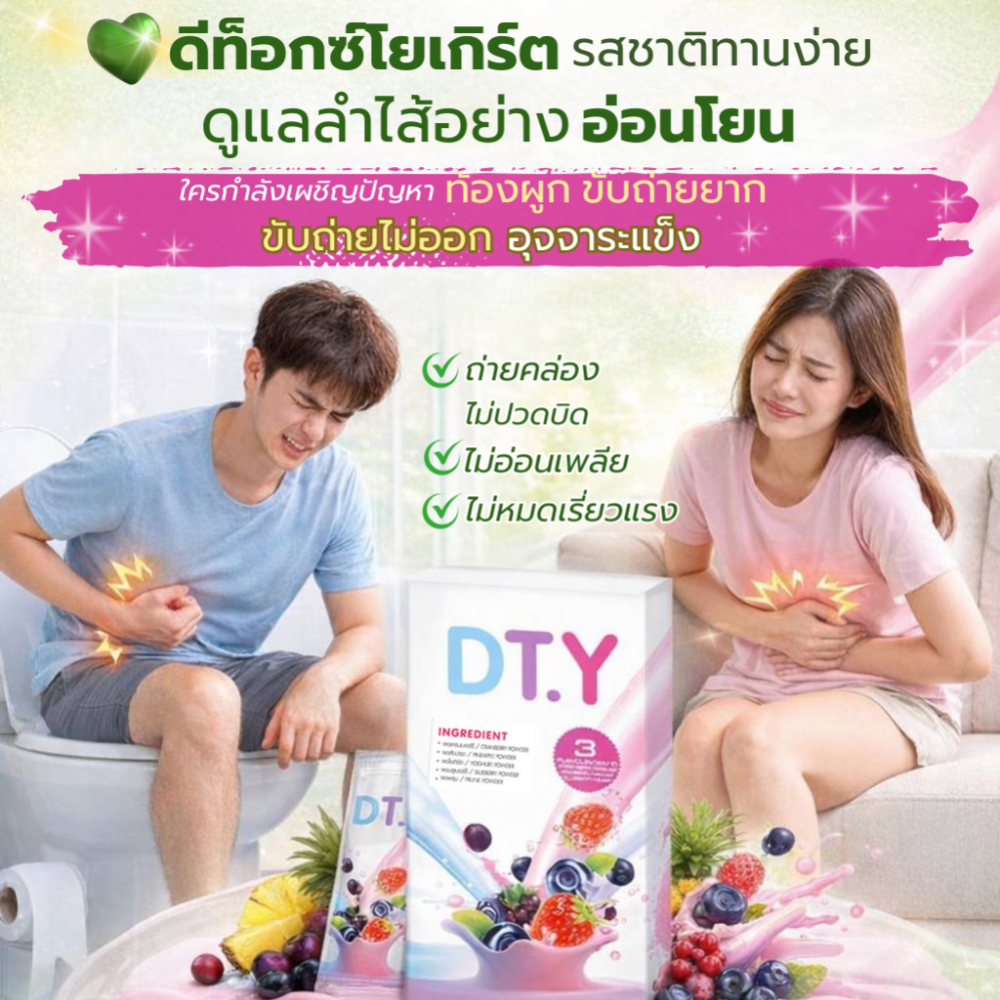DT.Y ดีที.วาย ดีทอกซ์ โยเกิร์ต สินค้าขายดี สำหรับคนรักสุขภาพ หรือคนที่ต้องการหันมาดูแลสุขภาพอย่างจริงจัง สิ่งแรกที่ต้องทำคือ เคลียร์ลำไส้ ให้ปราศจากสิ่งตกค้าง ของเสียเก่า ออกให้หมดเสียก่อน เพื่อเพิ่มประสิทธิภาพให้ลำไส้สามารถดูดซับสารอาหารใหม่ๆที่มีประโยชน์ได้ดียิ่งขึ้น เพราะลำไส้นั้นคือด่านแรกในการแยกของดีเข้าสู่ร่างกาย และผลักดันของเสียออกจากร่างกาย แปลว่าหากเราดูแลลำไส้ของเราไม่ดีเท่าที่ควร นั่นจะเป็นต้นเหตุของการเกิดโรคต่างๆอีกมากมาย แต่ถ้าลำไส้ทำงานได้ดี